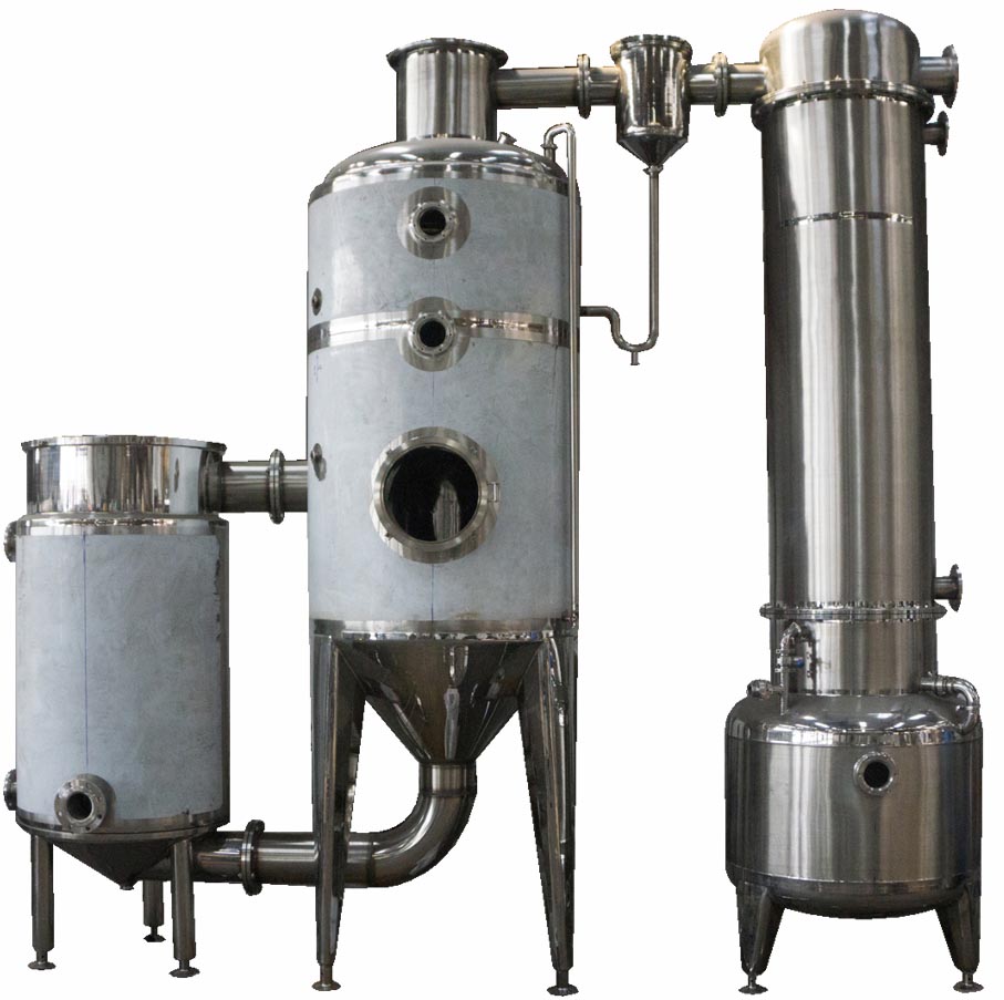 全部進入蒸發(fā)室,通過蒸發(fā)室的夾套加熱,進行常壓式減壓濃縮,提高物料的濃縮比重至1.2-1.3。 |